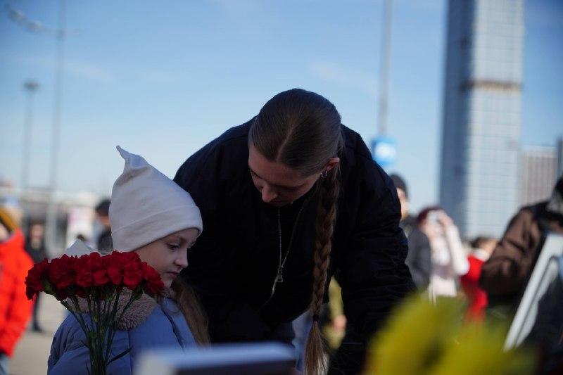 Ангелина Шалаева и её младшая сестра Василиса у мемориала жертвам теракта в «Крокус Сити Холле».