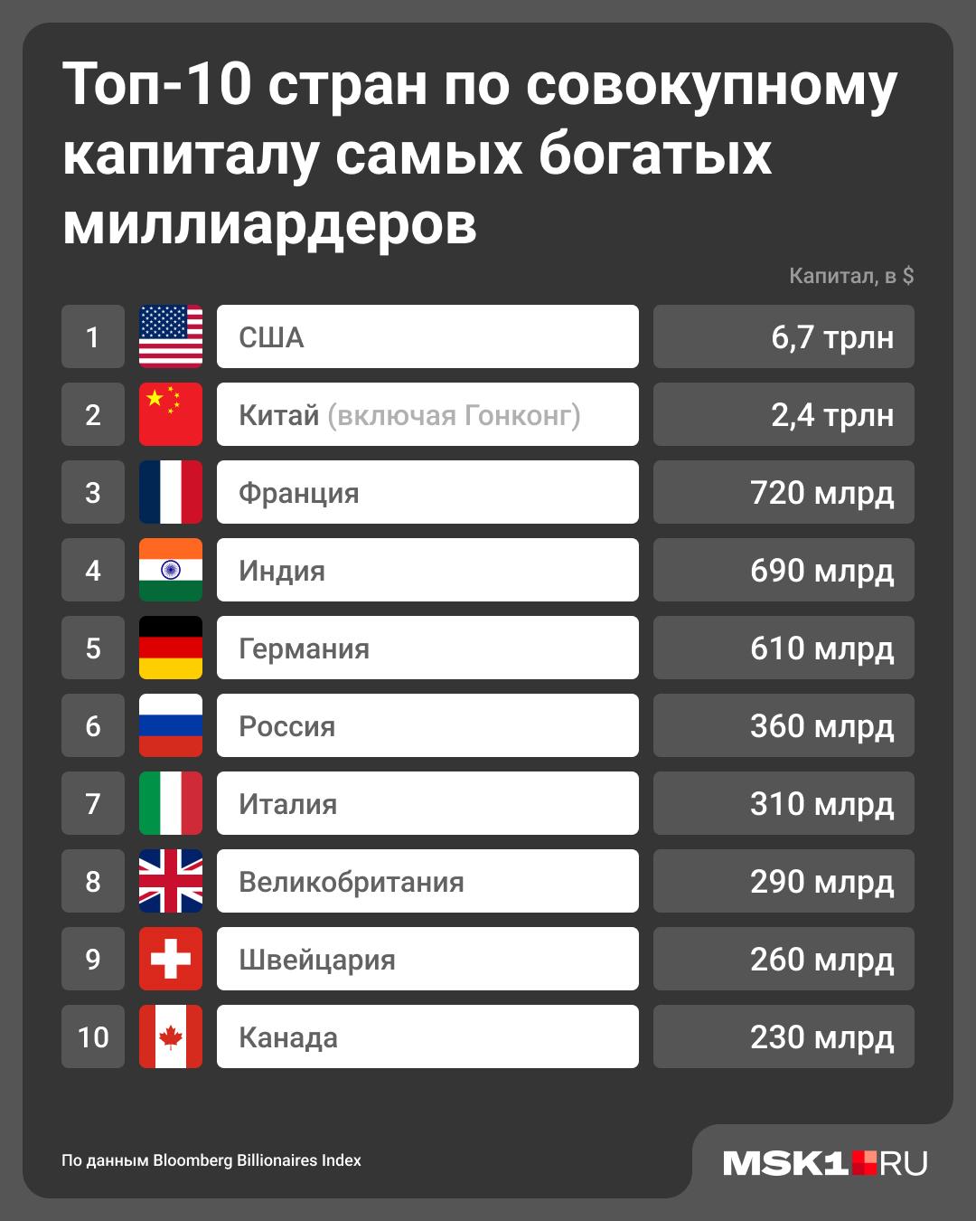 Несмотря на санкции, Россия занимает шестое место в мире по совокупному капиталу миллиардеров. При этом среди российских бизнесменов только Павел Дуров добился глобального масштаба.