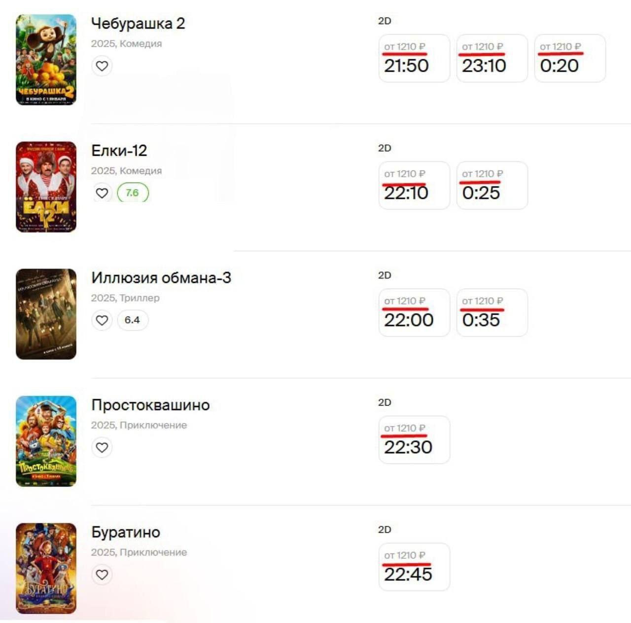В отдельных кинотеатрах удалось обнаружить билеты на эту киноленту по более доступным ценам — 350 и 438 рублей. Однако сеансы по такой стоимости проходят лишь один раз в течение дня.