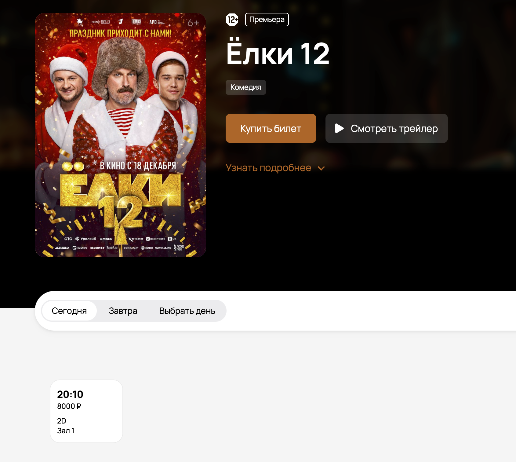 Билеты на новогодние фильмы в Москве стоят до 8 тысяч