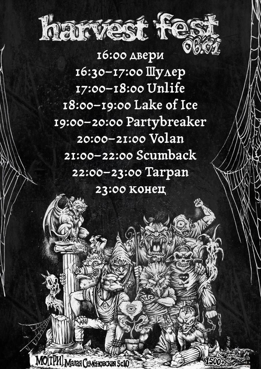 На фестивале Harvest Fest планировались выступления семи коллективов, каждый из которых должен был играть приблизительно в течение часа.