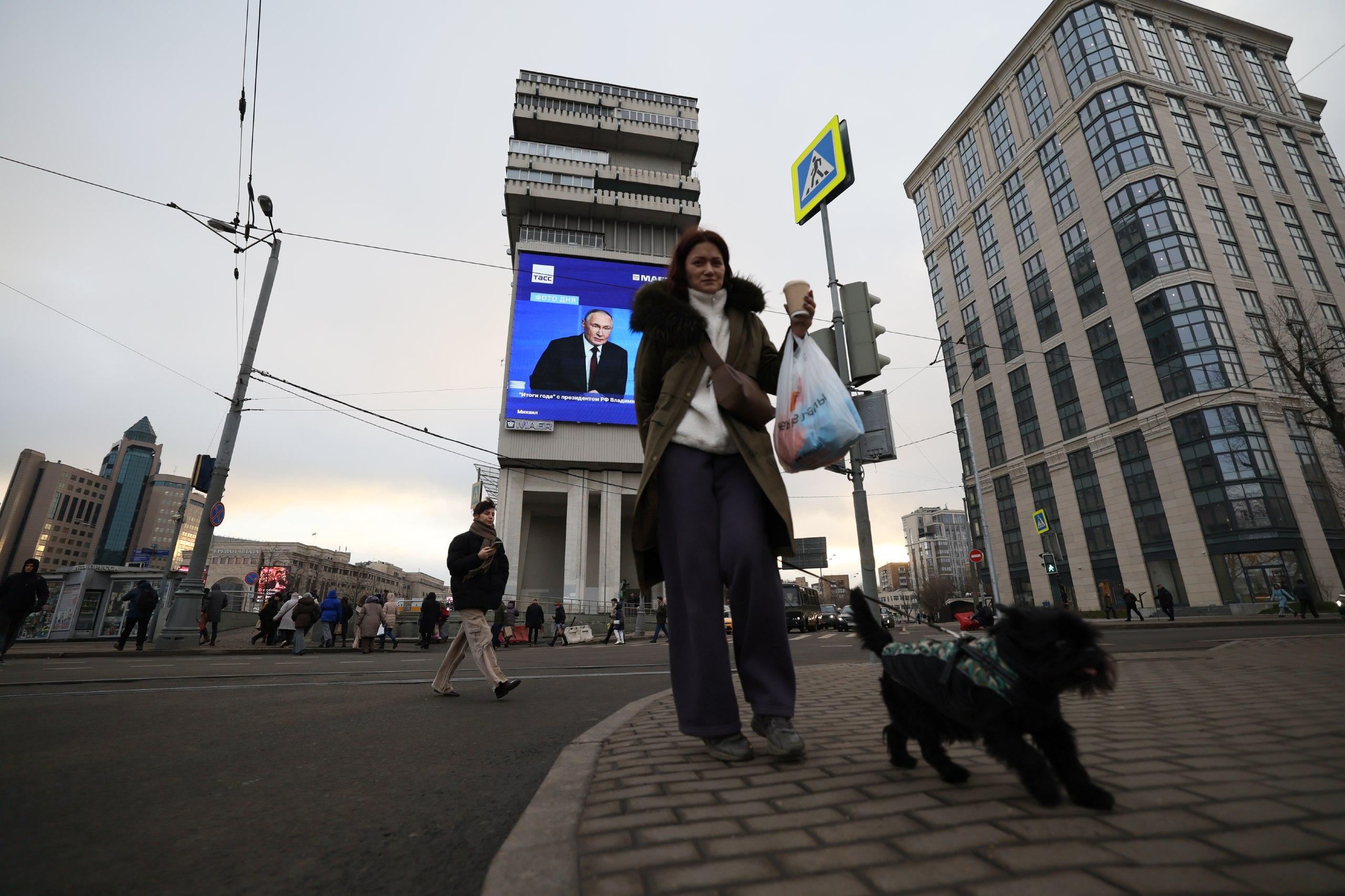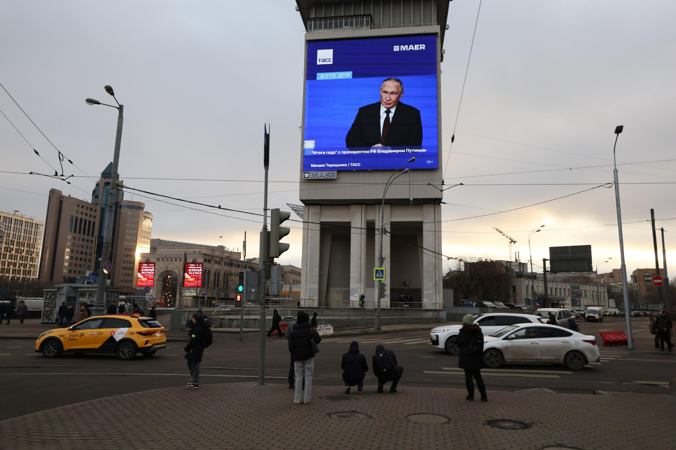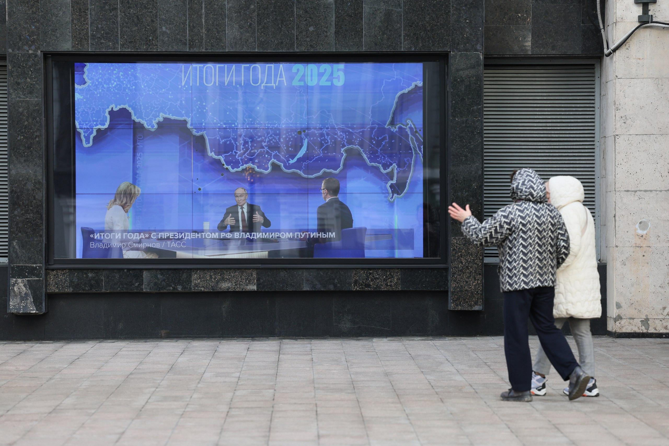 Прямую линию с президентом России Владимиром Путиным транслировали на уличных экранах Москвы. Корреспондент запечатлел, как жители столицы следят за подведением итогов года. Одни проявляли явный интерес к выступлению, другие лишь мельком бросали взгляд на мониторы.