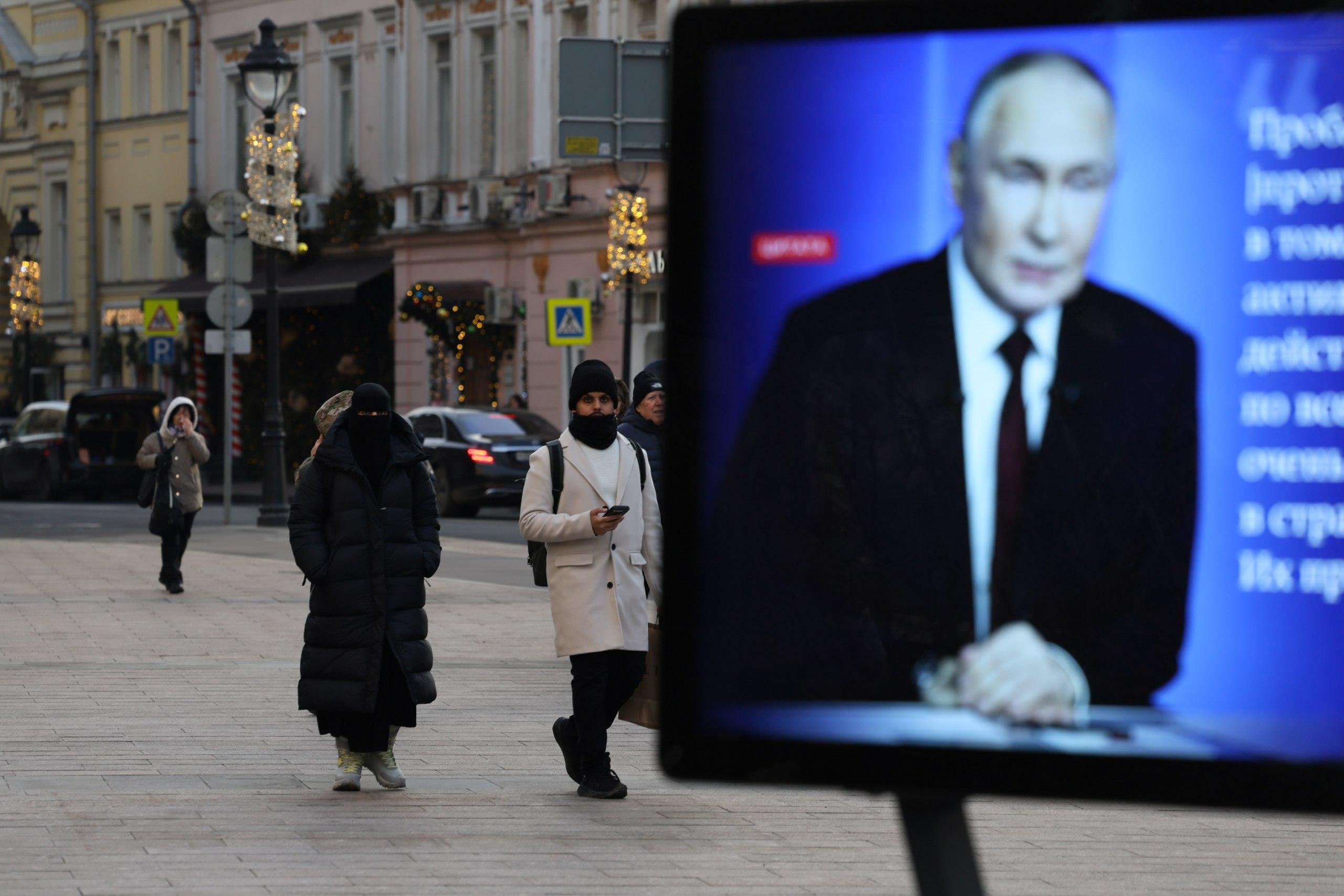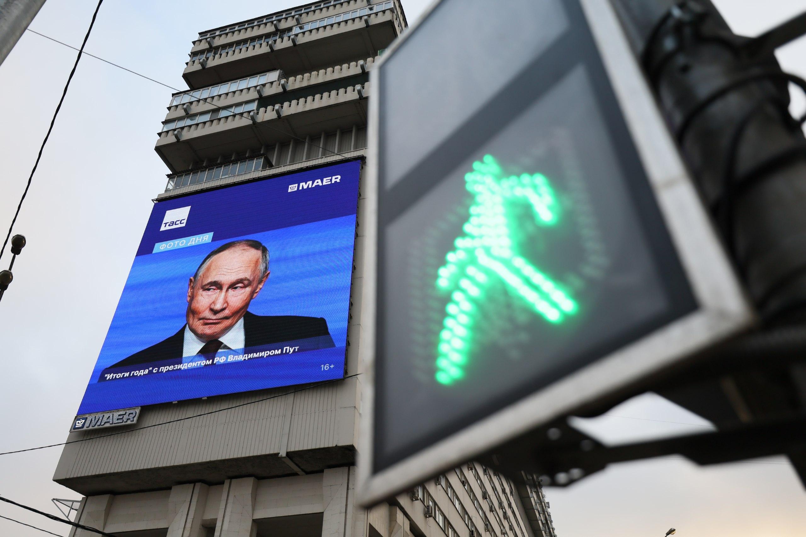 Изображения Владимира Путина на экранах по всей столице