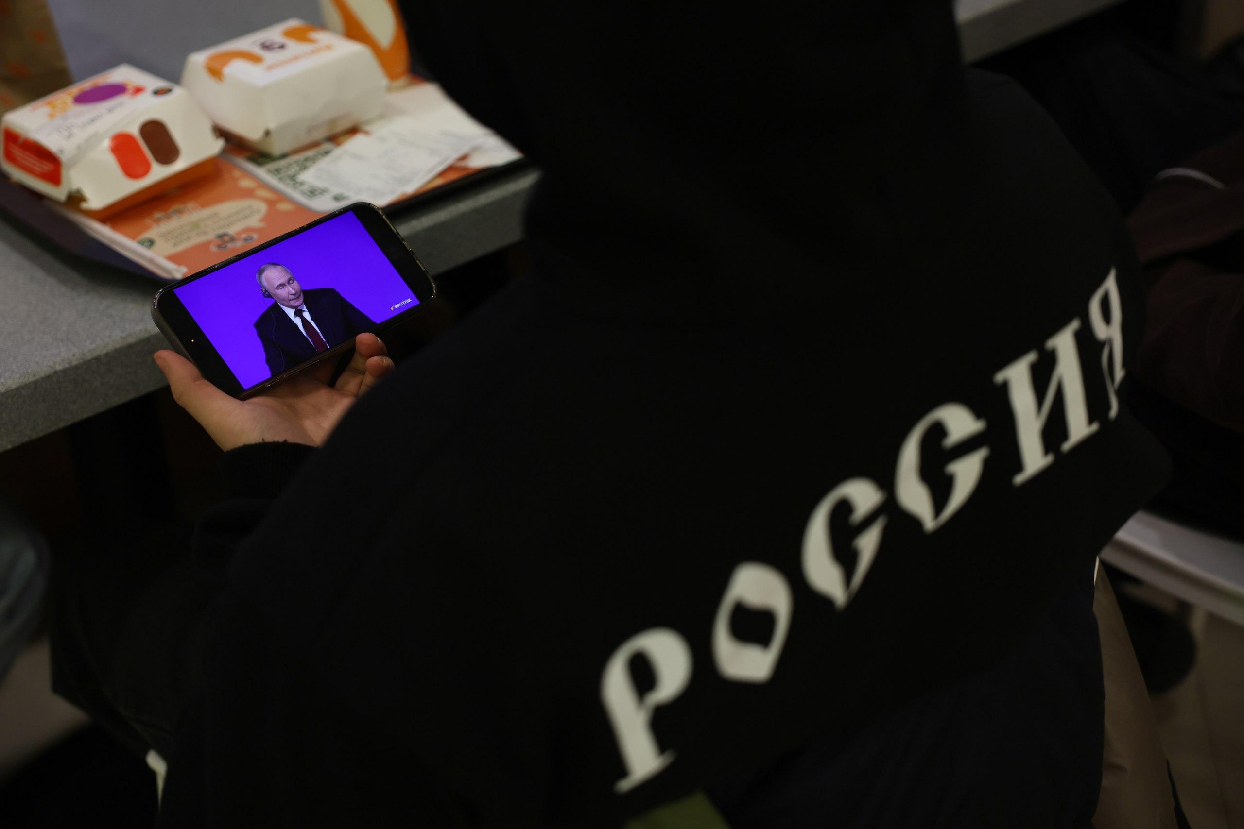 Москвичи следили за прямой линией Путина на улицах
