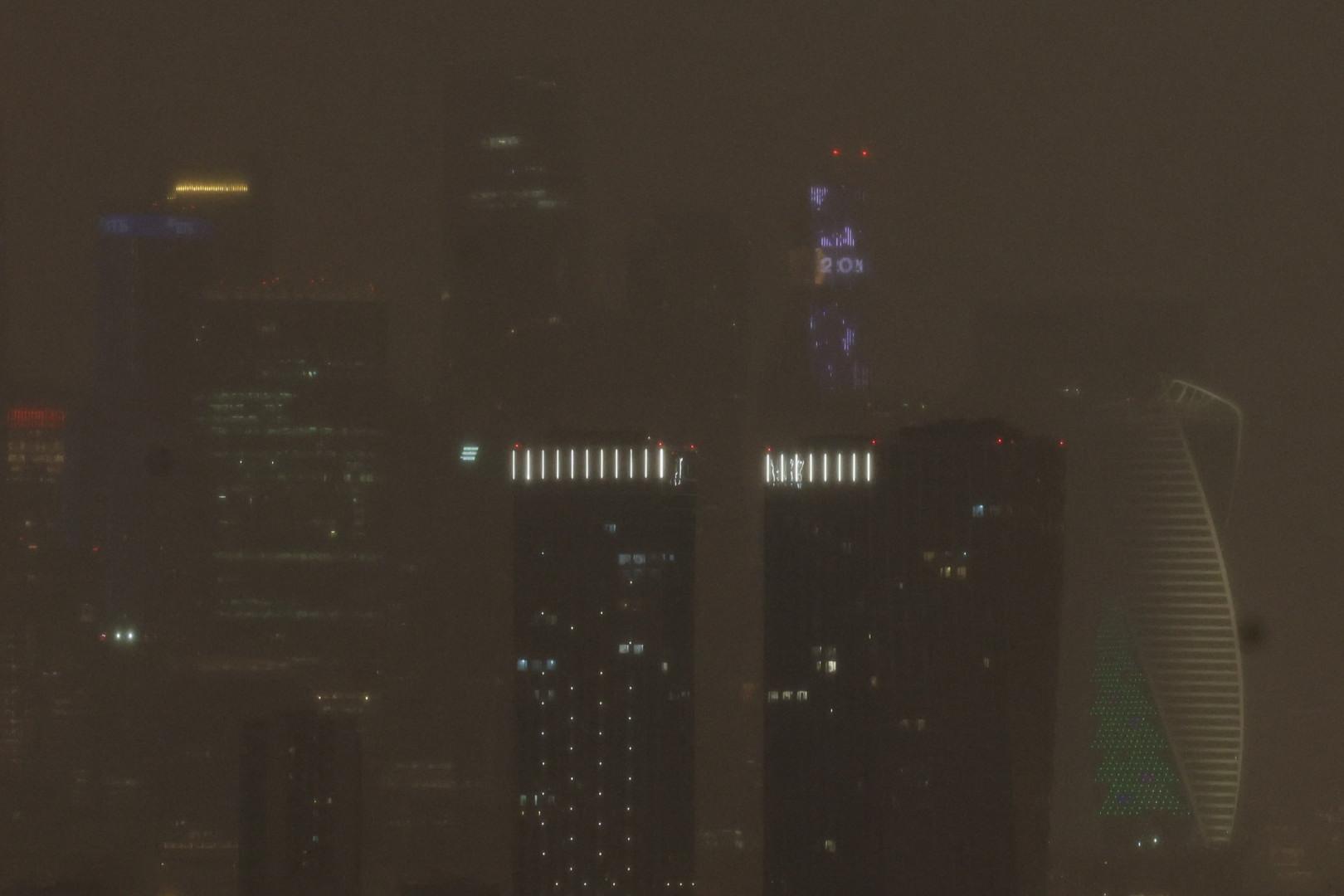 Значительная часть комплекса «Москва-Сити» скрывается в снежной пелене.