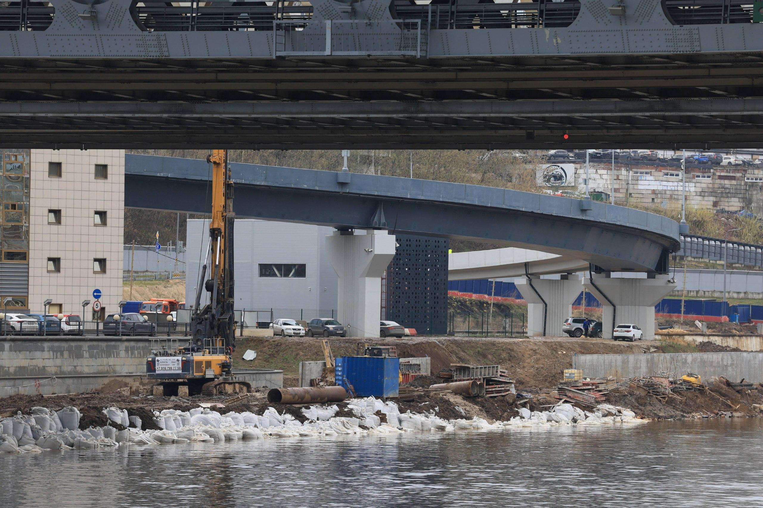 Подготовка территории под Дорогомиловским мостом к предстоящей реконструкции