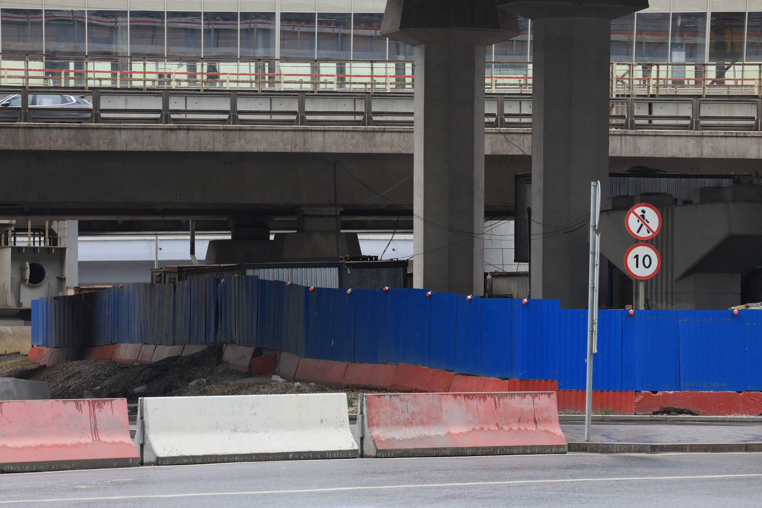 Вокруг несущих опор уже установлено синее строительное ограждение. Однако официальных табличек или информации о точных сроках начала реконструкции пока нет.