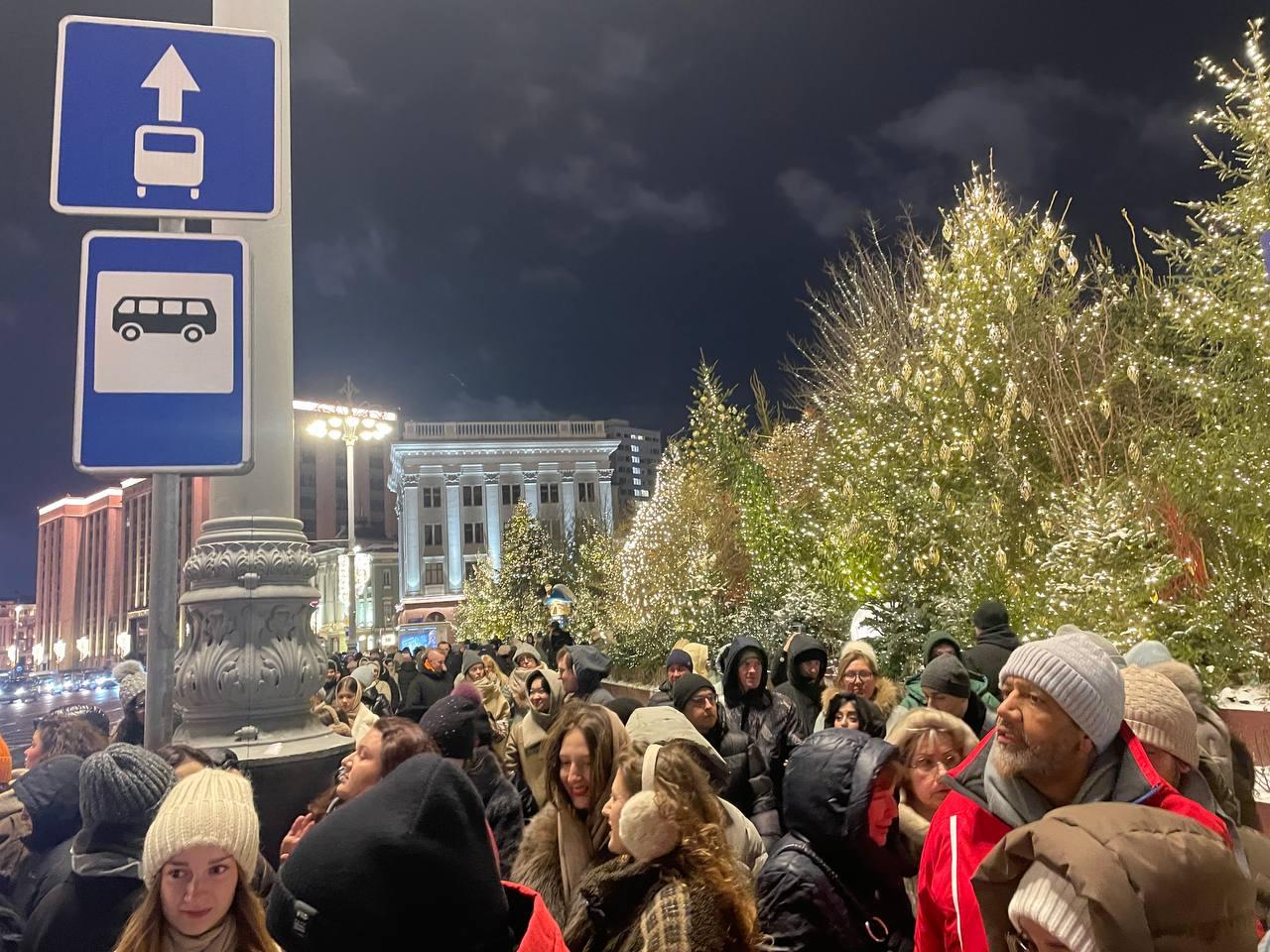 В субботу, 13 декабря, на улицах в центре Москвы сформировались многочисленные толпы. Большое скопление людей наблюдалось в районе Красной площади, где недавно начали работу новогодняя ярмарка у ГУМа и каток.