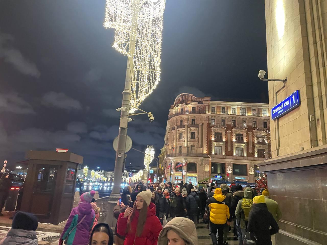 «У станции метро „Охотный ряд“ частично перекрыли пятый выход. Из метро можно выйти, но нельзя зайти — пассажирам предлагают идти через „Театральную“. В итоге народ ломанулся в тесный подземный переход», — рассказала корреспондент.