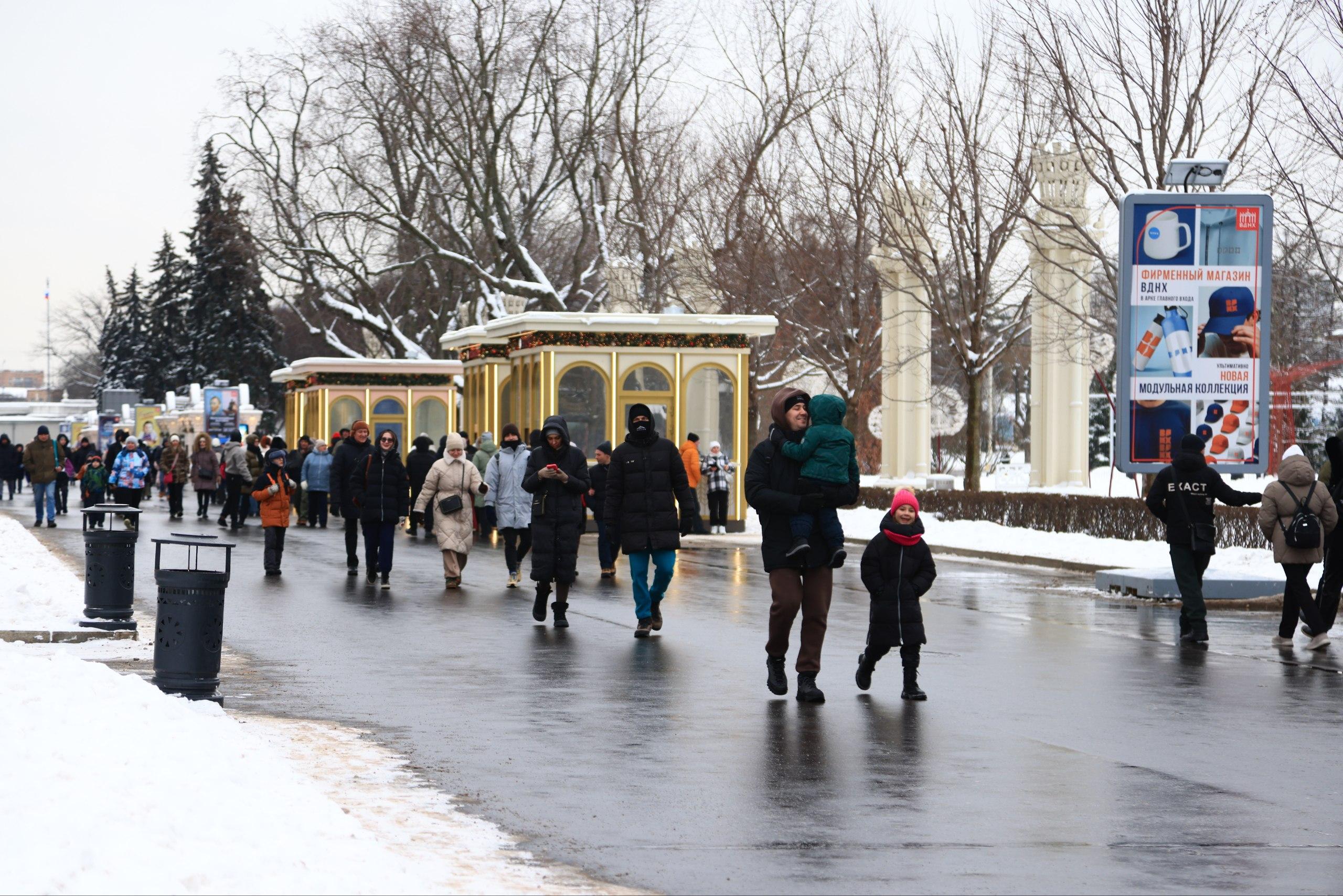 Второй день новогодних праздников москвичи и гости столицы посвятили поиску развлечений после праздничного застолья. Кроме Красной площади, одним из ключевых мест притяжения остаётся ВДНХ. В январские каникулы здесь особенно многолюдно, и посетителям стоит быть готовыми к очередям.