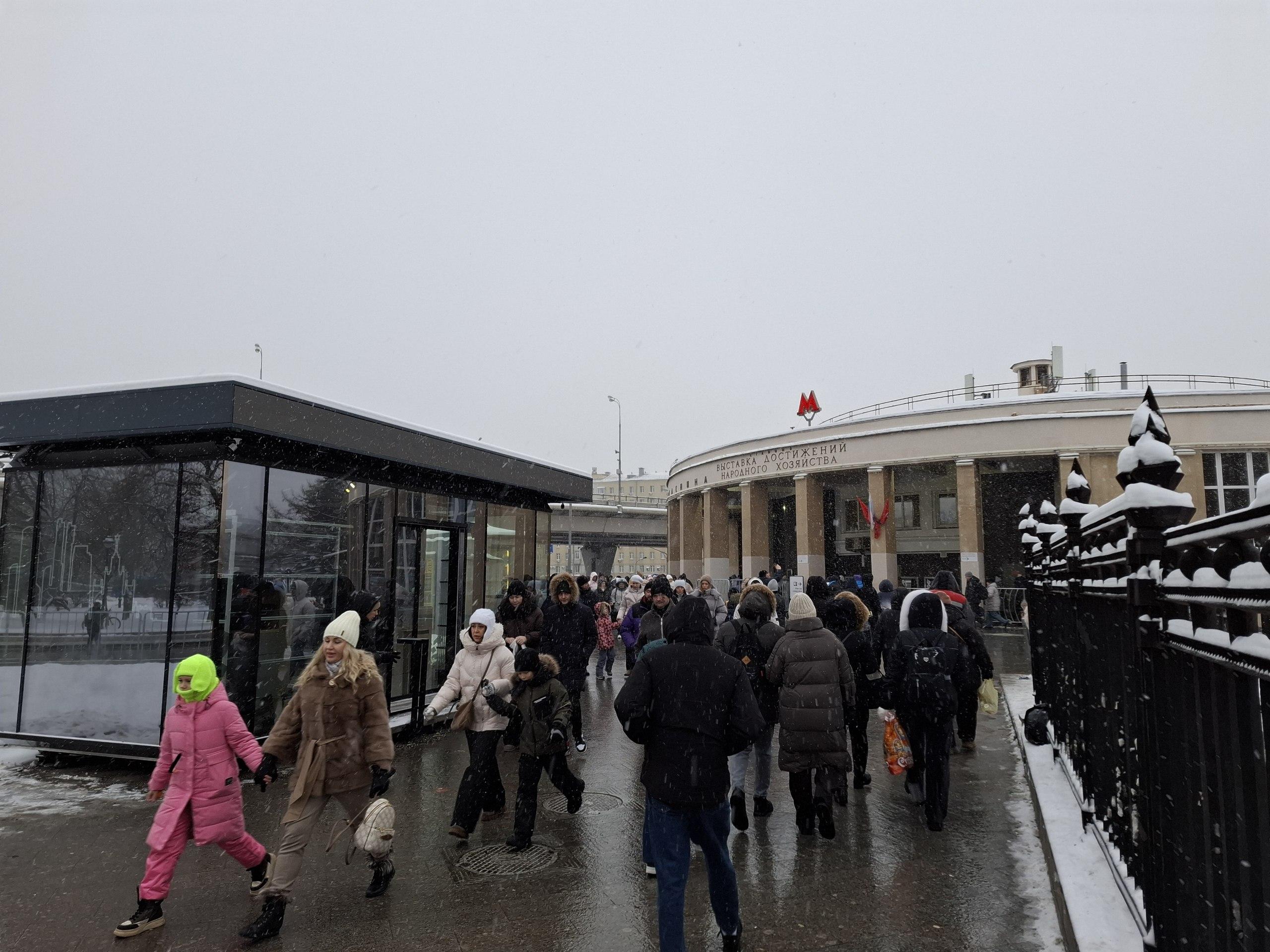 Скопления людей наблюдаются уже у станции метро «ВДНХ»