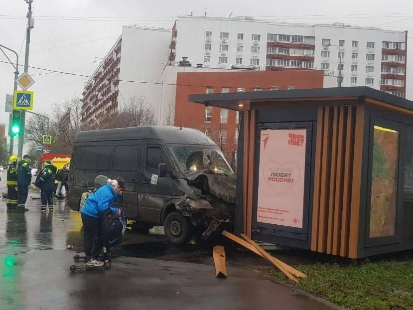 Фургон и скорая столкнулись в Москве, снесен киоск