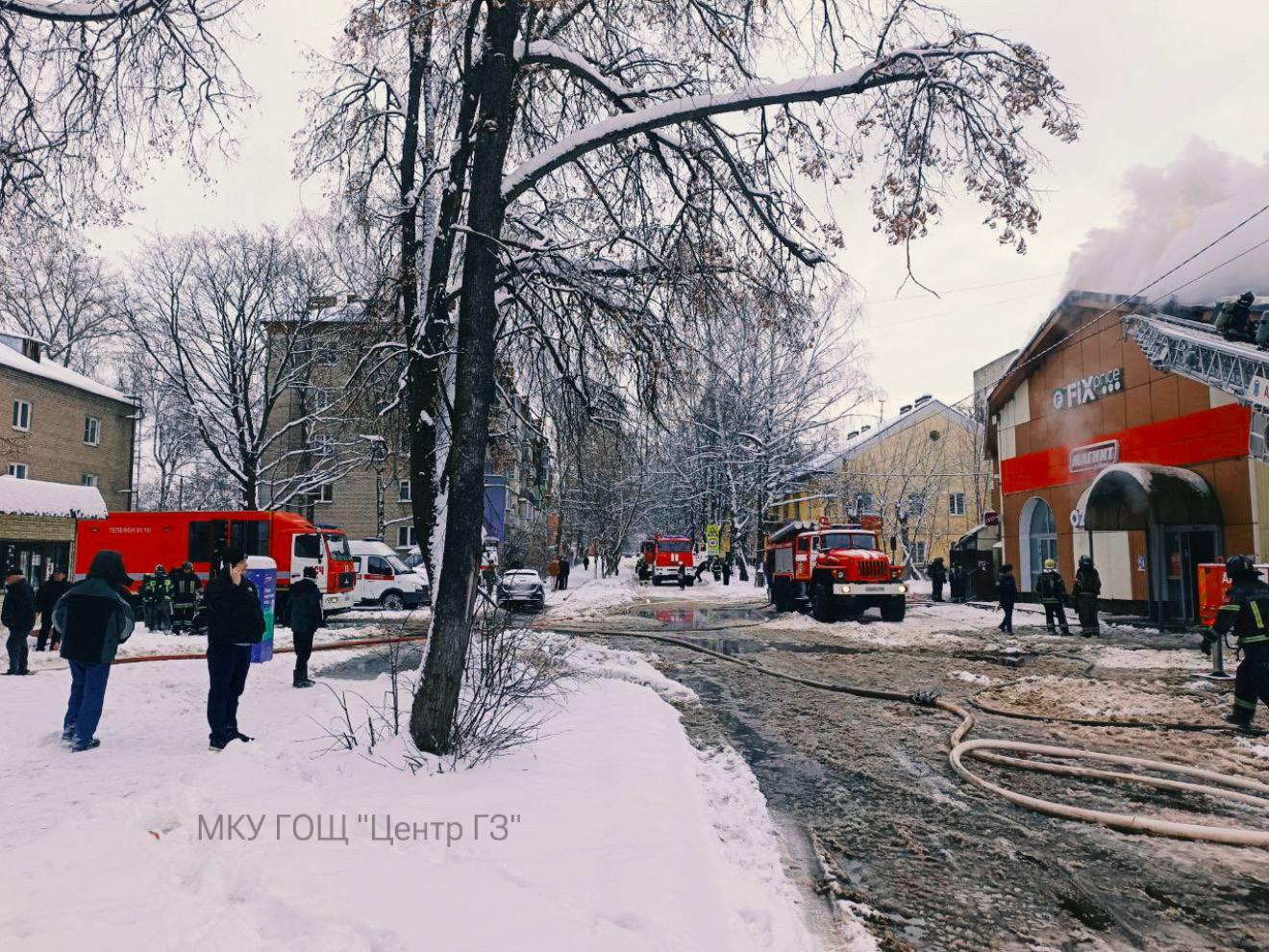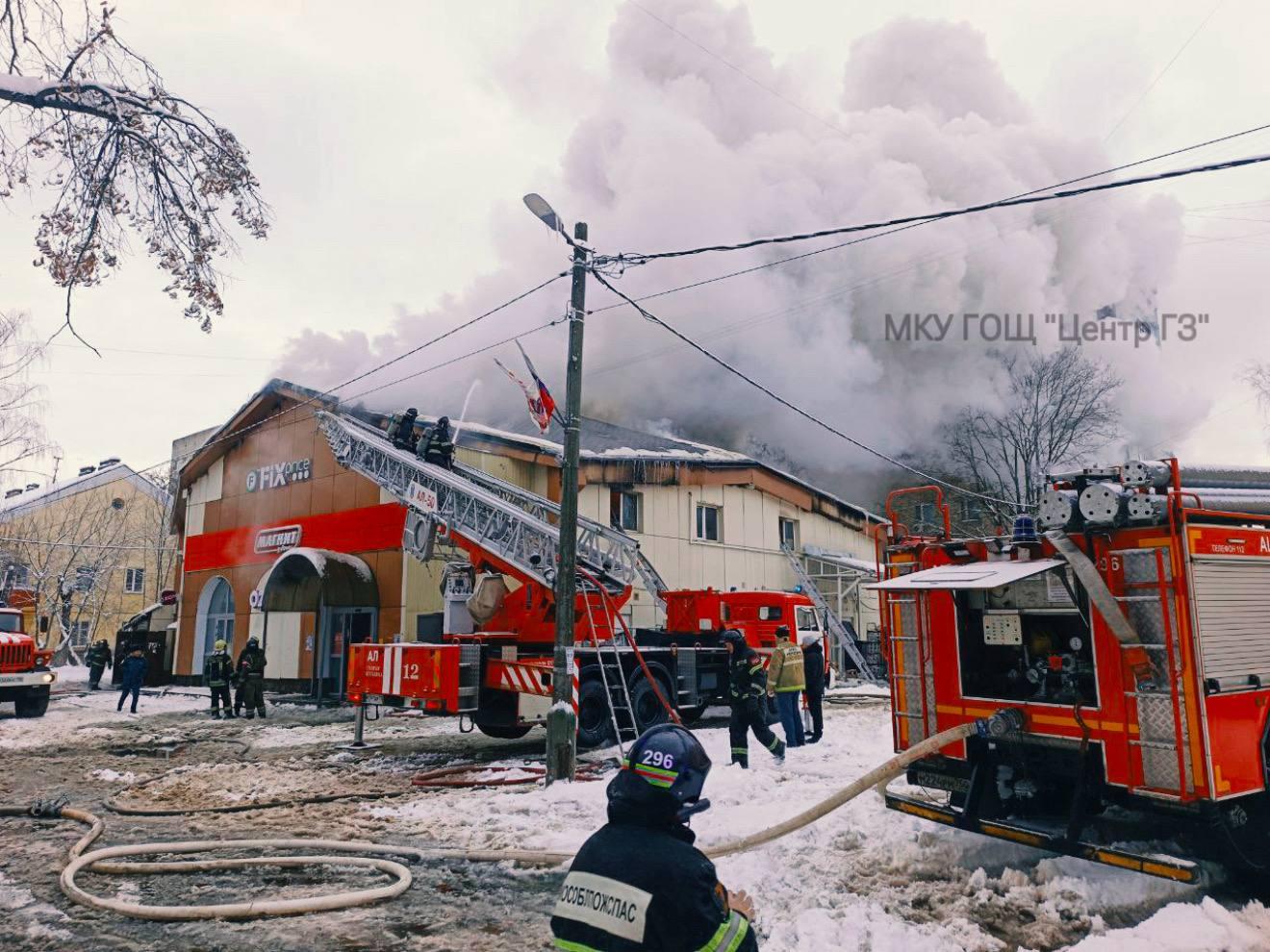 Пожар в двухэтажном здании магазина в Монино