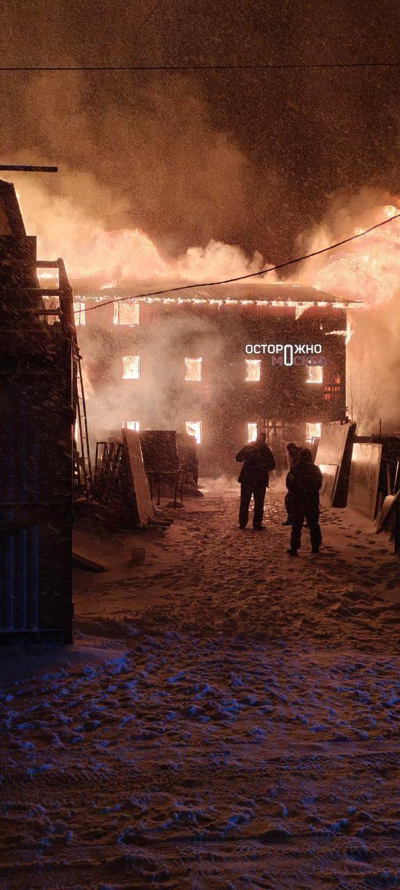 По информации очевидцев, в охваченном огнём двухэтажном здании размещались магазин пиломатериалов и автомастерские. Оперативные службы сообщают, что пожар возник в неэксплуатируемом строении.