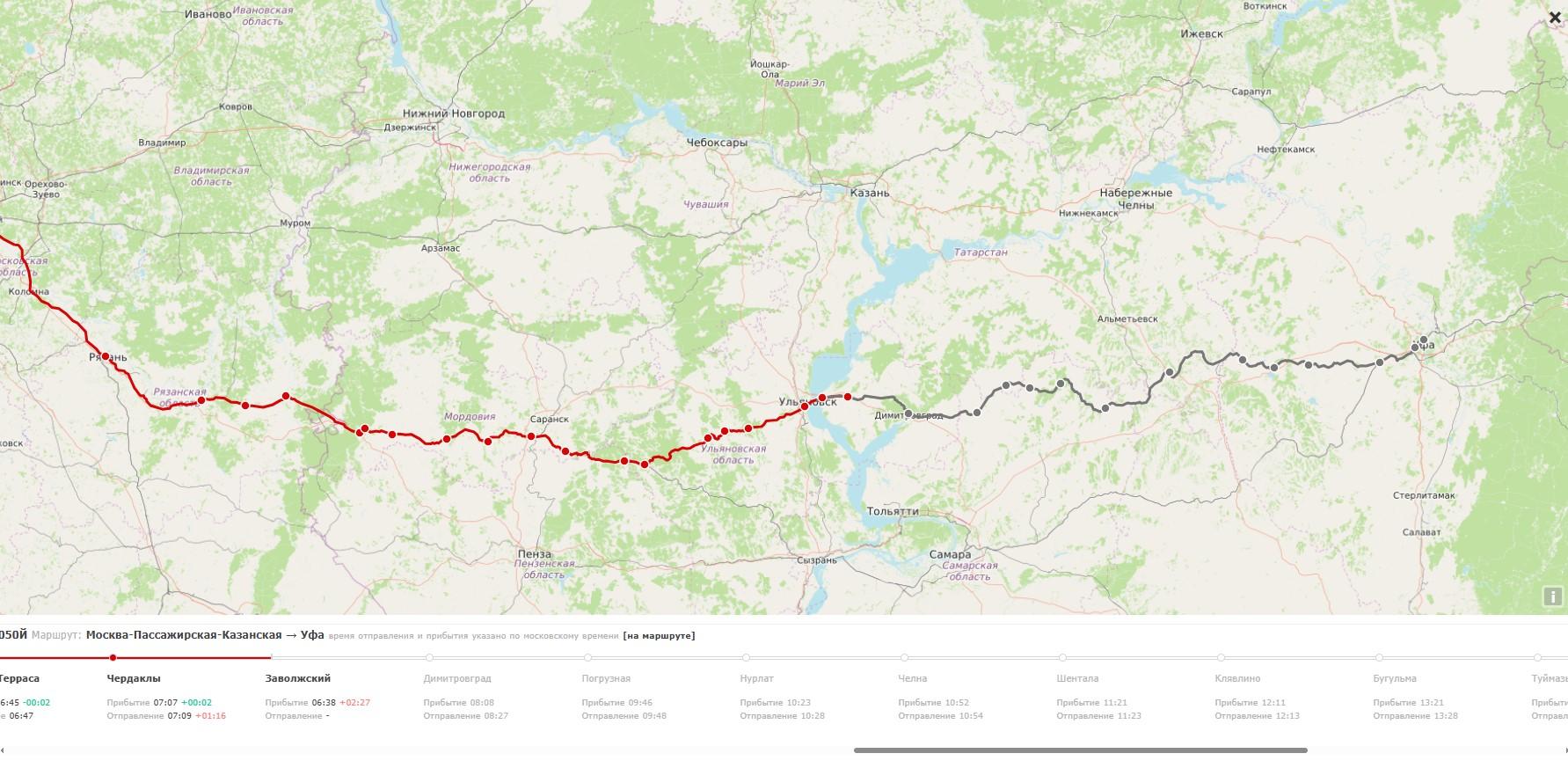 - Состав №50 Москва — Уфа отправлен в обратном направлении по изменённому пути через Ульяновск, Сызрань и Самару.