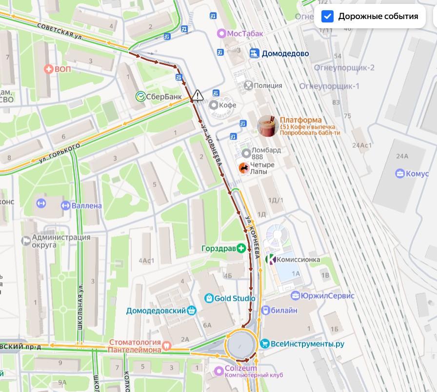 Дорогу у ТЦ перекрыли, что отмечено на картографических сервисах