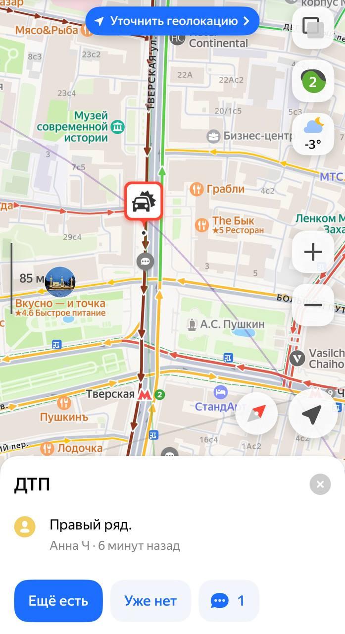 На Тверской улице произошло возгорание автомобиля, что привело к затруднению движения на протяжённом участке.