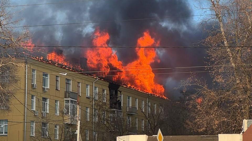Крупный пожар полностью уничтожил кровлю пятиэтажного дома в подмосковном Жуковском. Огонь быстро распространился по всей площади крыши.