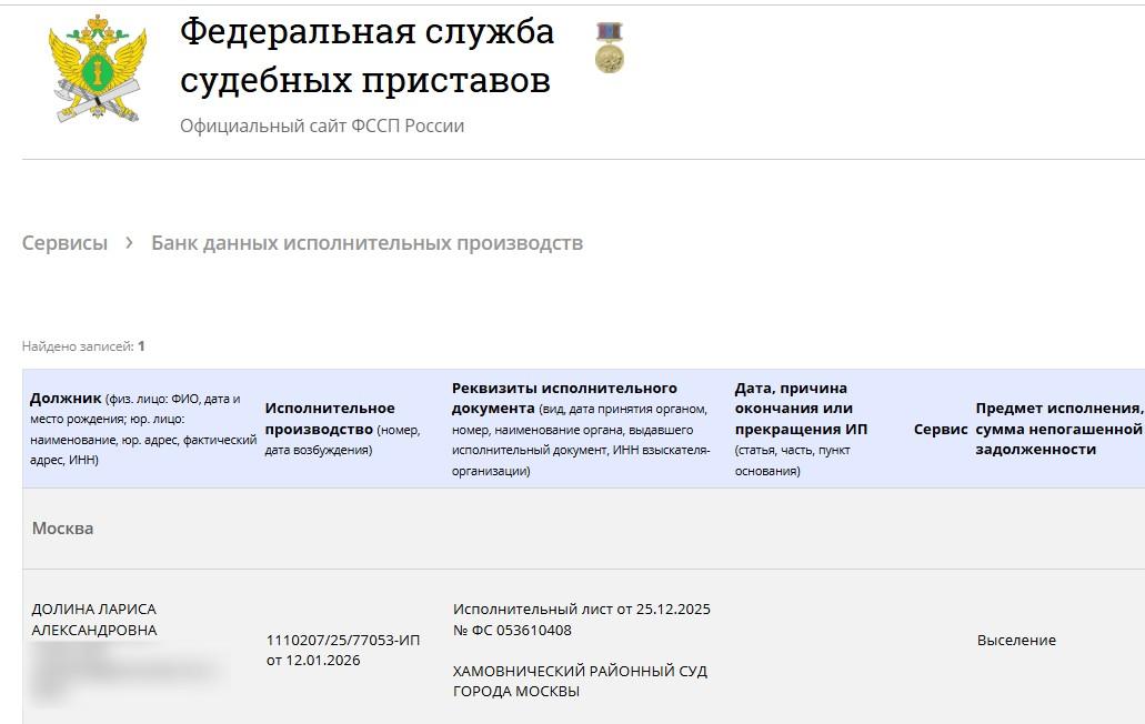 Исполнительное производство Федеральной службой судебных приставов было возбуждено 12 января.