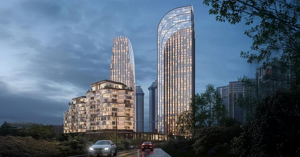 На визуализациях изображены две высокие башни с округлыми вершинами и два сравнительно низких корпуса. Согласно данным застройщика, их высота составит 19 и 8 этажей соответственно.