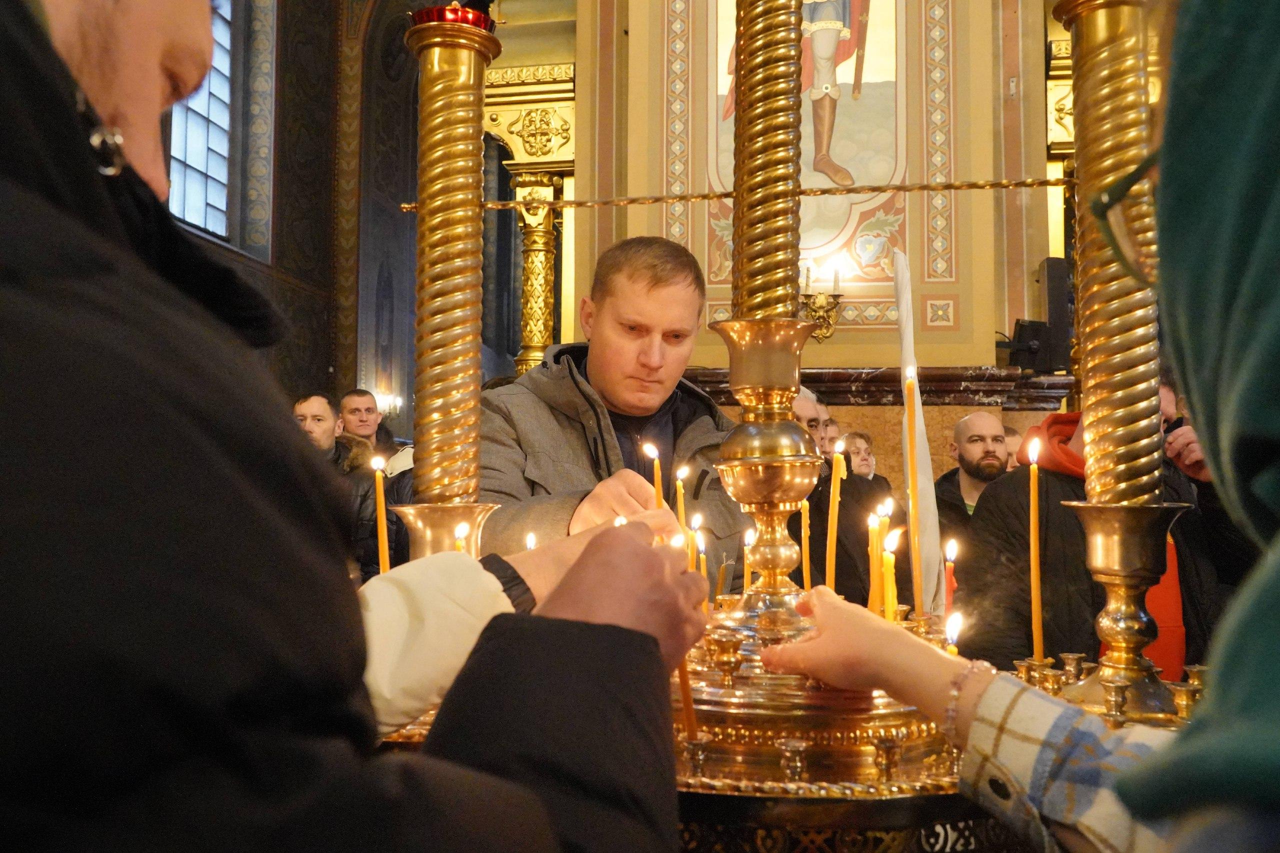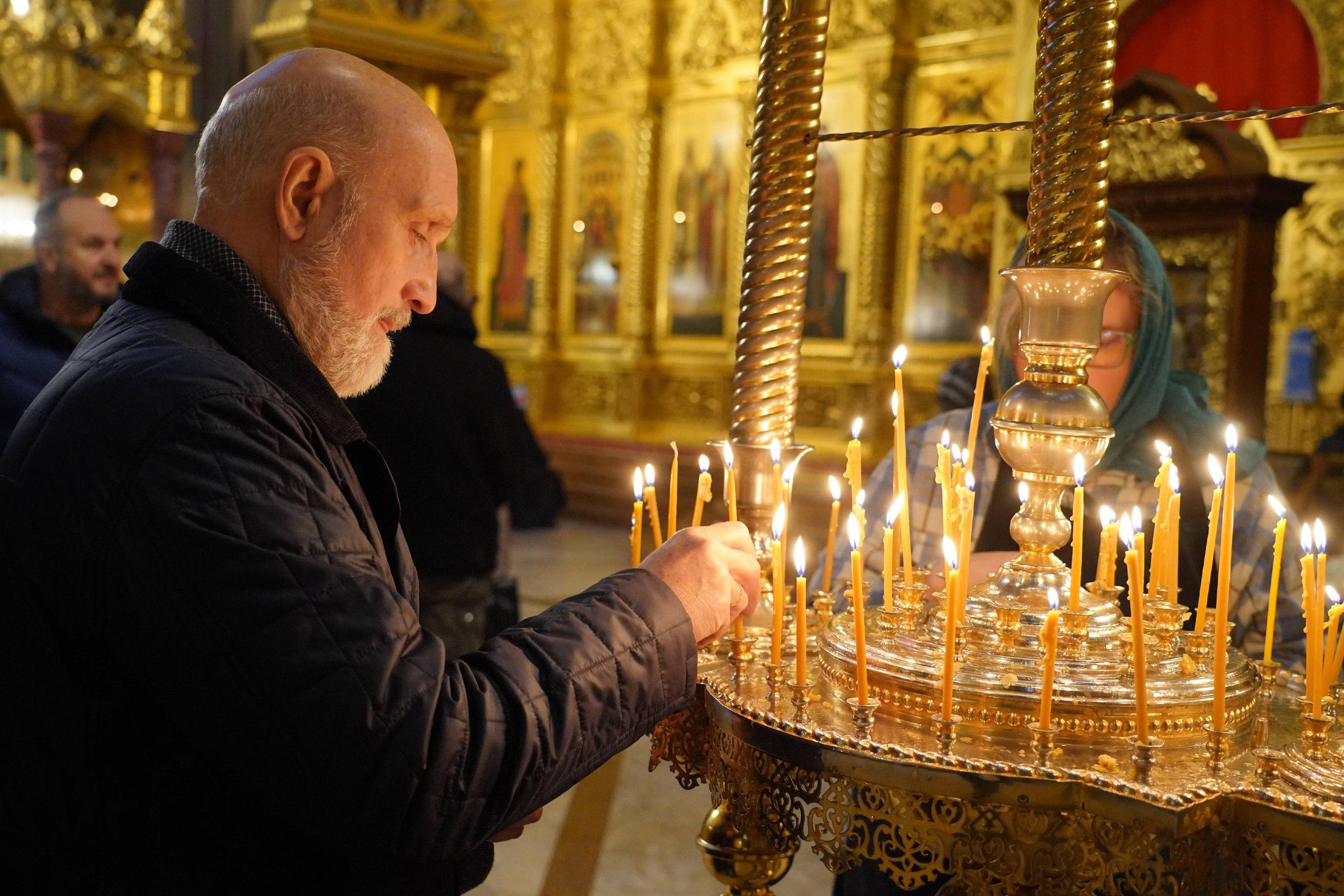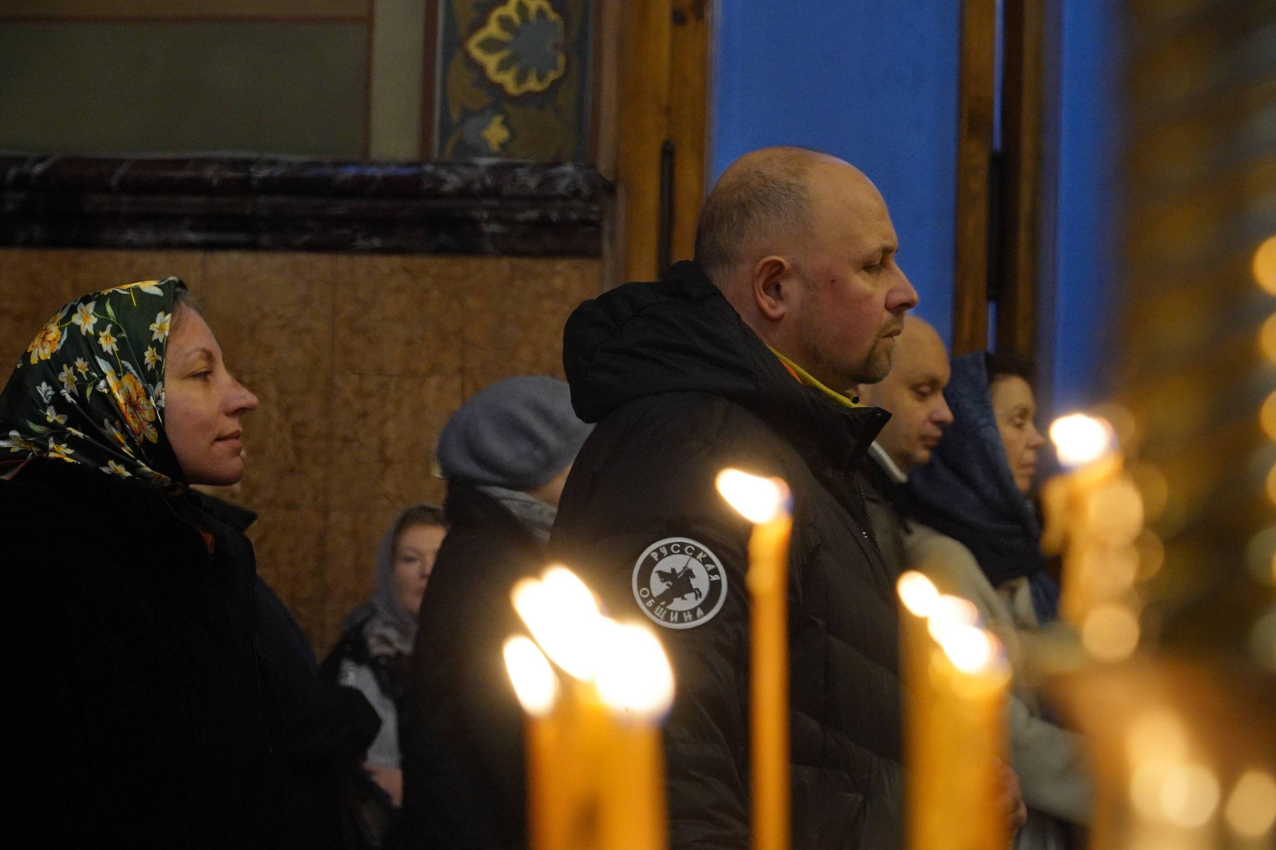 Помещение церкви было практически полностью заполнено. Верующие ставили свечи перед иконами, прикладывались к святыням, слушали молитвы и крестились. Участники возносили молитвы за российских военнослужащих, находящихся в зоне специальной военной операции.