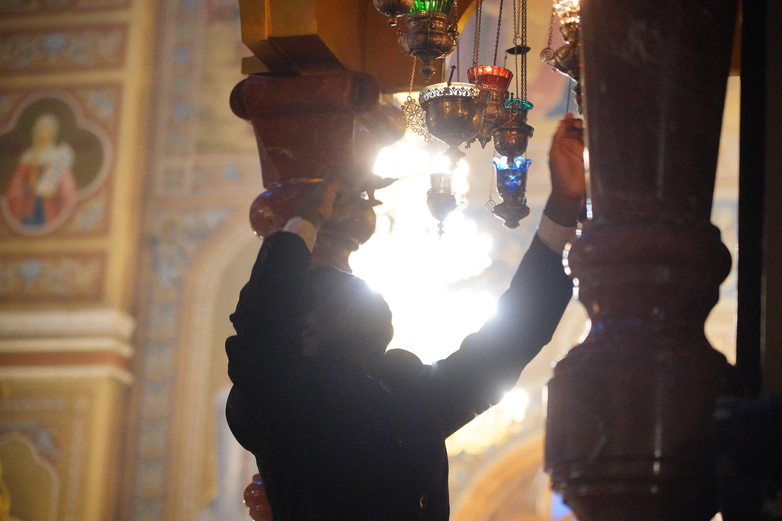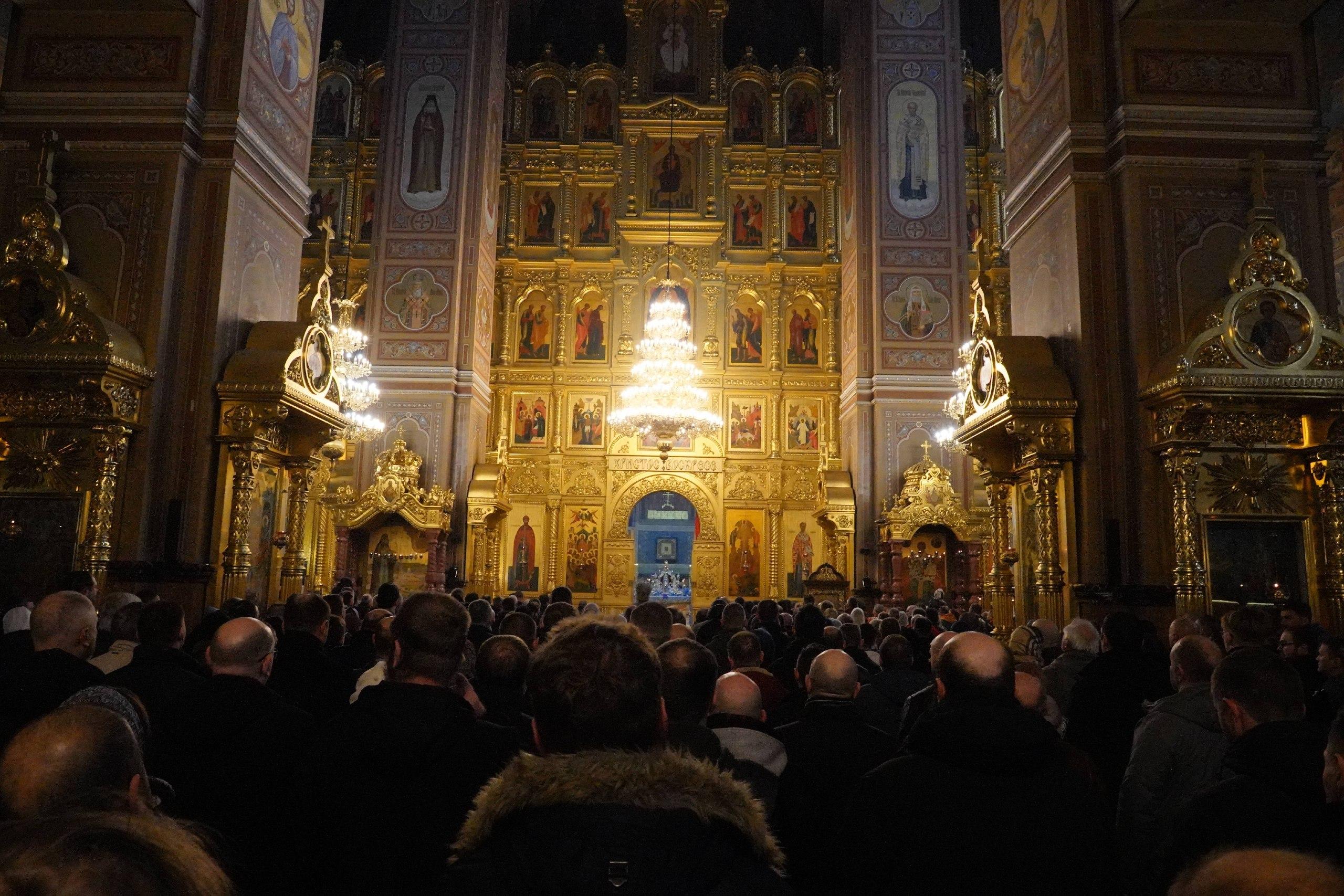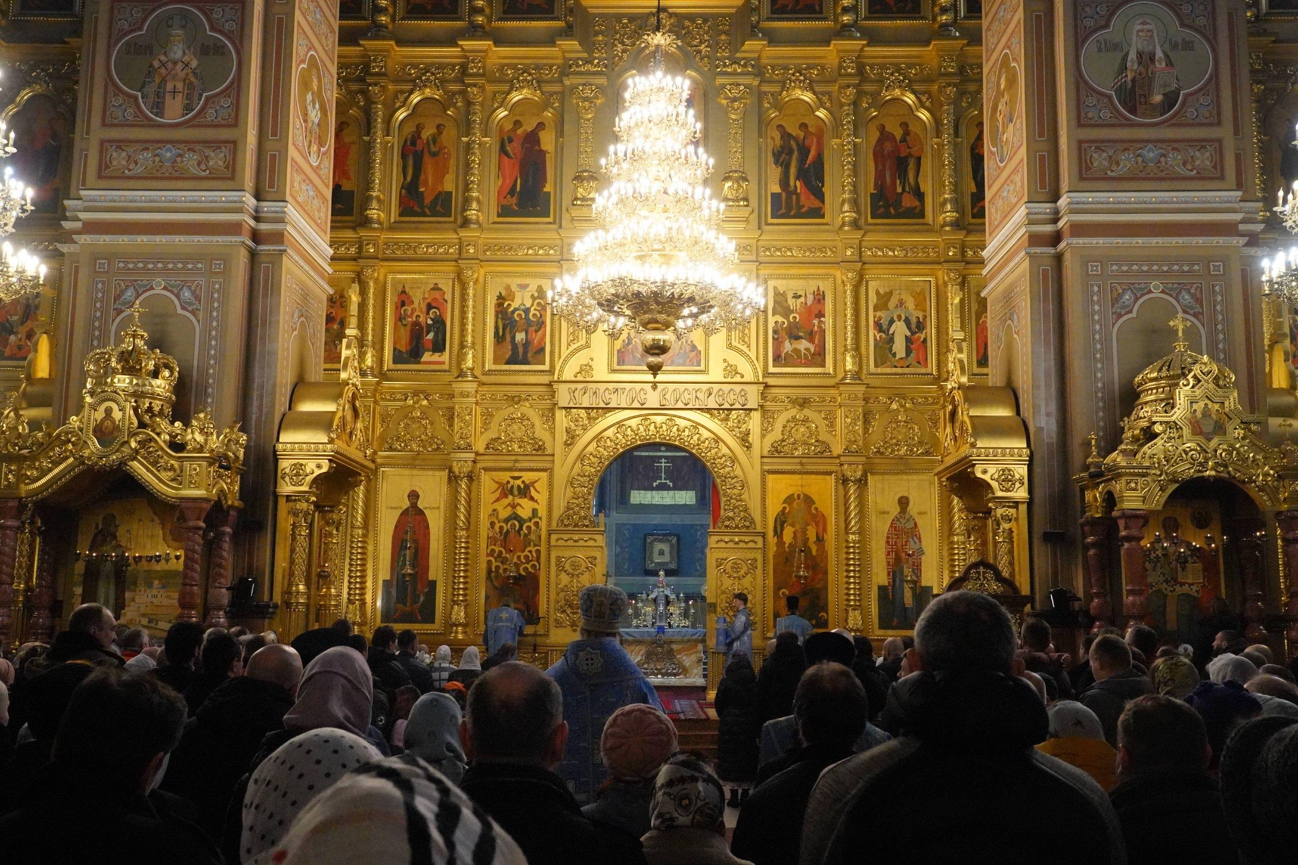 Помещение церкви было практически полностью заполнено. Верующие ставили свечи перед иконами, прикладывались к святыням, слушали молитвы и крестились. Участники возносили молитвы за российских военнослужащих, находящихся в зоне специальной военной операции.