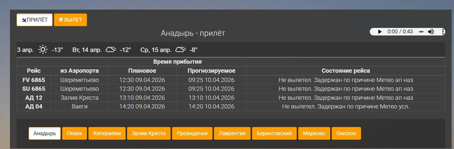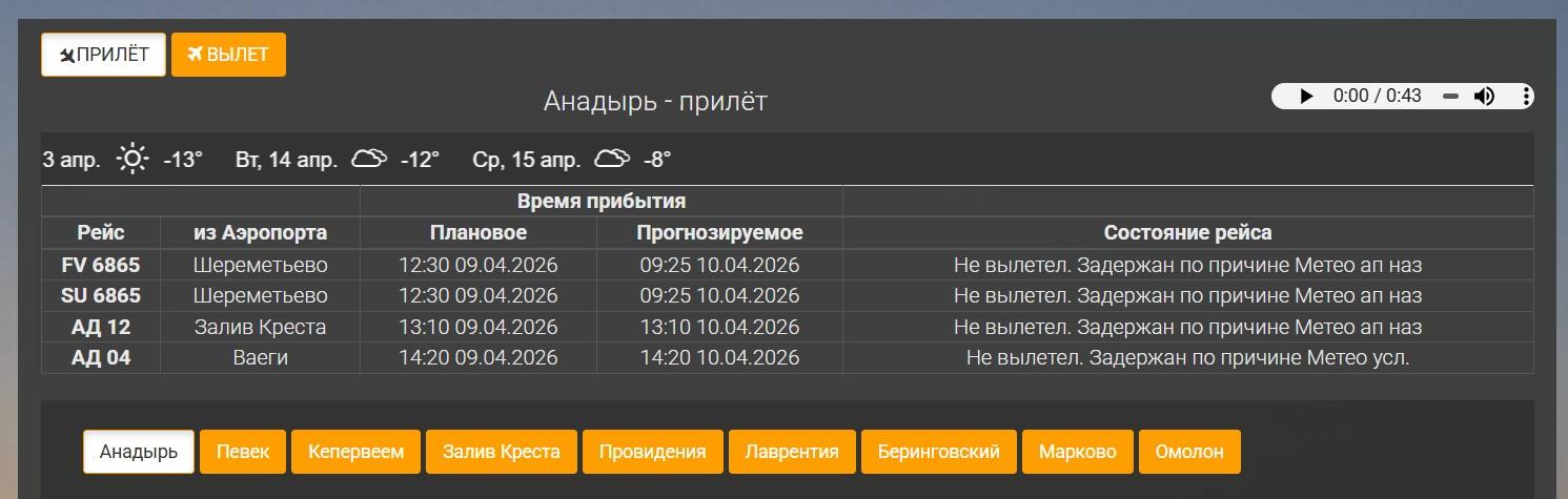 «Магаданская транспортная прокуратура держит на контроле соблюдение прав пассажиров», — сообщили в ведомстве. Согласно онлайн-табло, воздушные суда, которые должны были забрать людей с Чукотки, не вылетели из Москвы из-за неблагоприятных погодных условий в Анадыре.