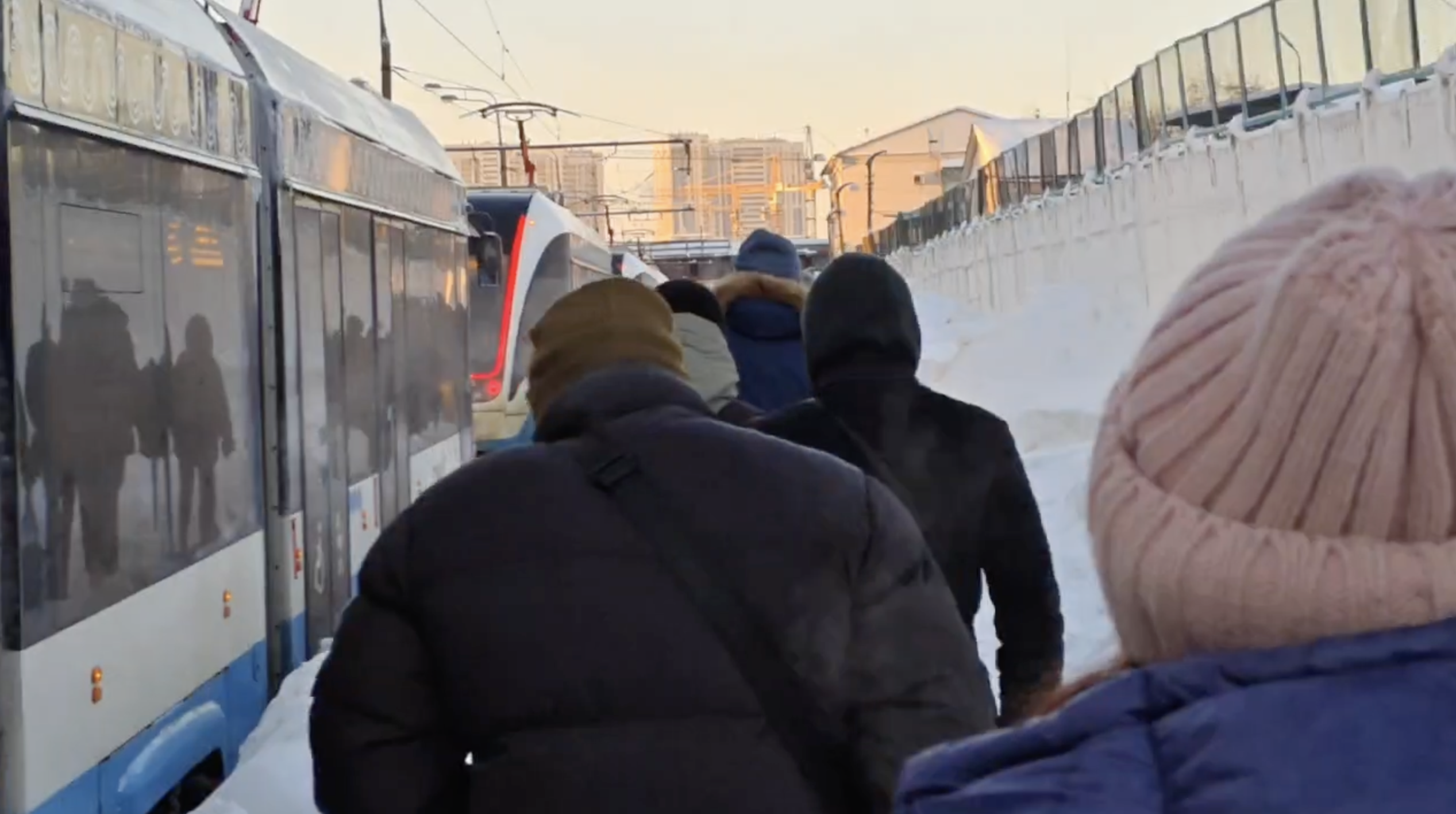В пятницу, 30 января, на северо-востоке Москвы, около станции метро «Бульвар Рокоссовского», движение трамваев было парализовано из-за сильного снегопада. Вагоны выстроились в длинную очередь, образовав пробку на путях.
