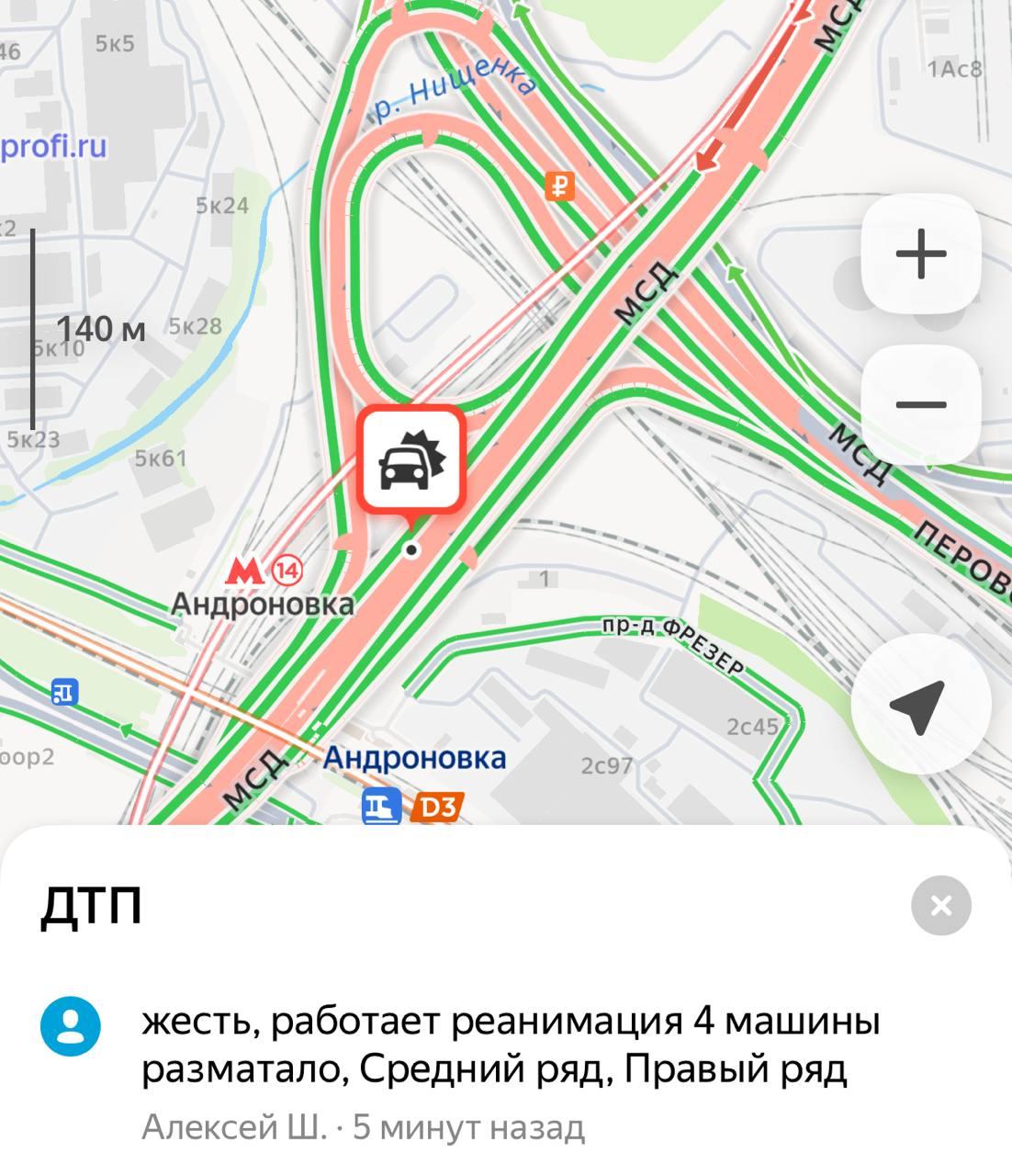 Столкновение нескольких автомобилей случилось на Юго-Восточной хорде, недалеко от станции метро «Андроновка».