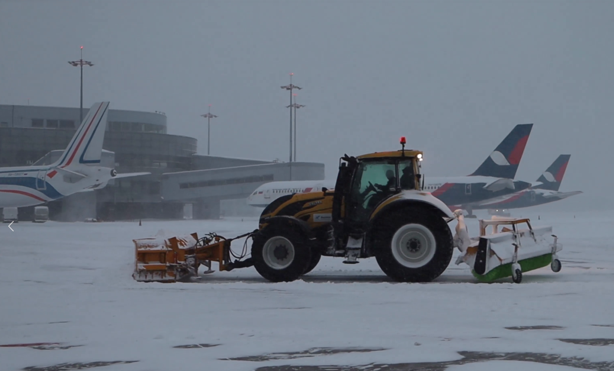 В Шереметьево задействовали более 70 единиц спецтехники для поддержания работы аэродрома в условиях снегопада.