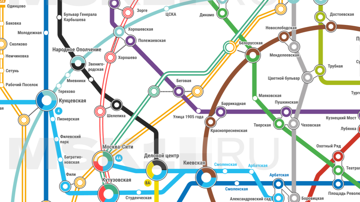 На схеме метро обозначится новая графитовая ветка — Рублево-Архангельская линия. Ее начальная точка расположится в районе Москва-Сити у станции «Деловой центр». Станции «Деловой центр» и «Шелепиха», функционировавшие как часть Большой кольцевой линии с 2018 года, были временно закрыты в 2024 для строительства тоннелей новой линии.