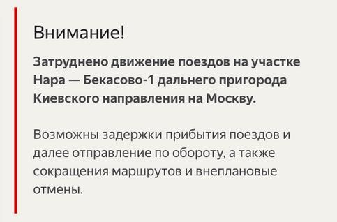 Информация о задержках пригородных поездов на Киевском направлении МЖД.