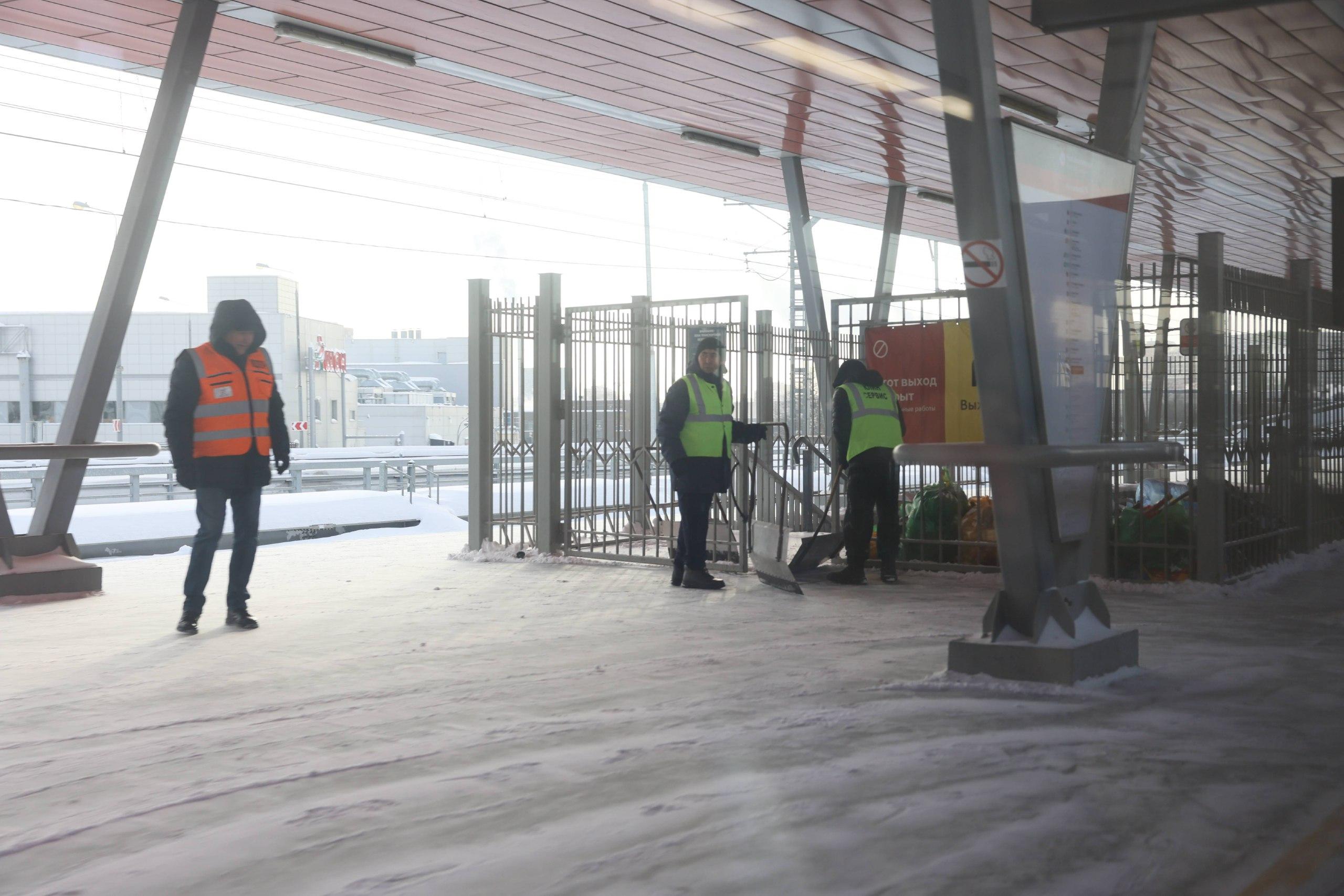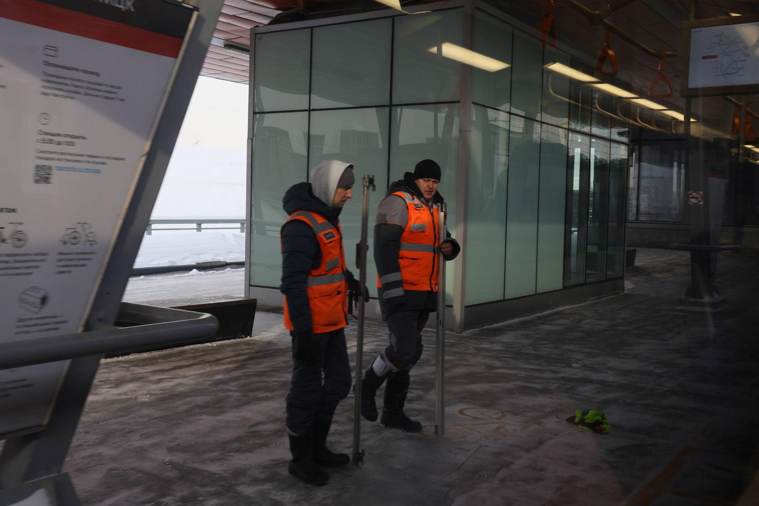 Вблизи станции через громкоговорители непрерывно транслируются объявления с рекомендацией выбирать альтернативные маршруты. На самой платформе сотрудники в спецодежде проводят осмотр крыши и основания, оценивая масштабы повреждений.