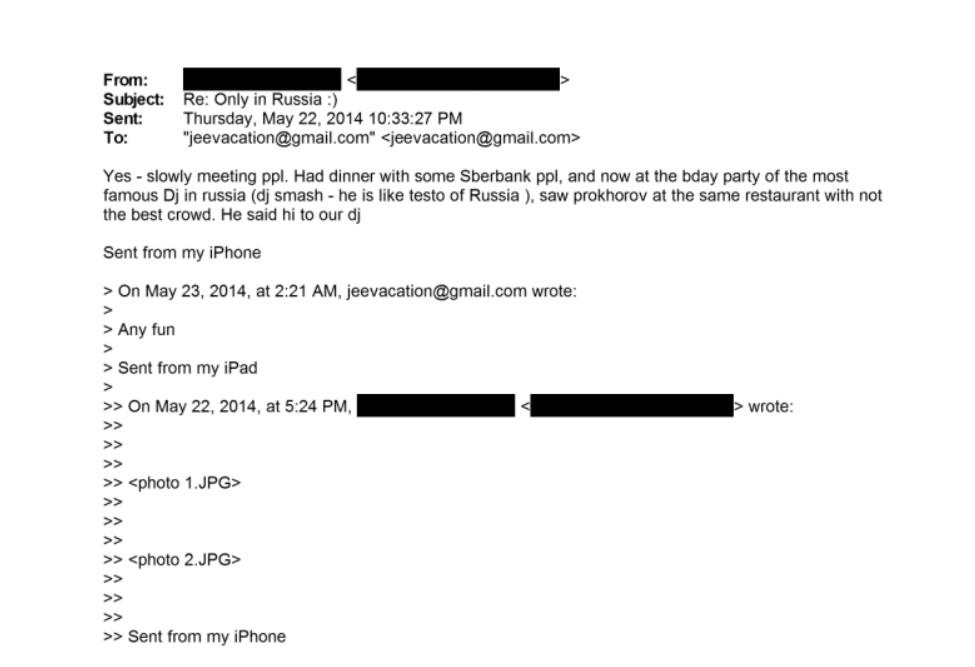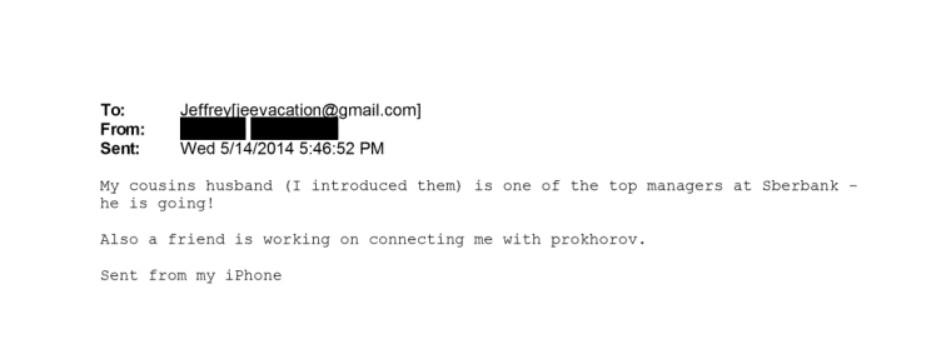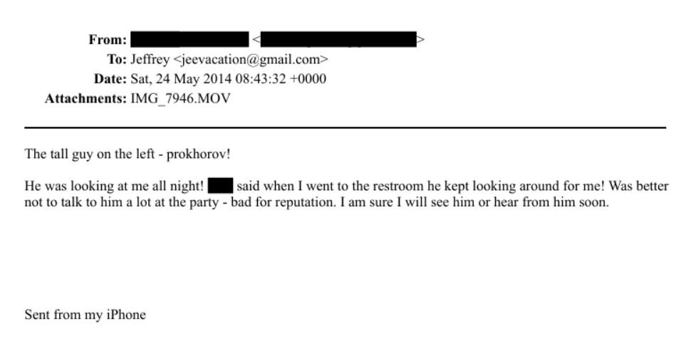 Сообщение, отправленное Джеффри Эпштейну из России в середине мая 2014 года, касалось Михаила Прохорова.